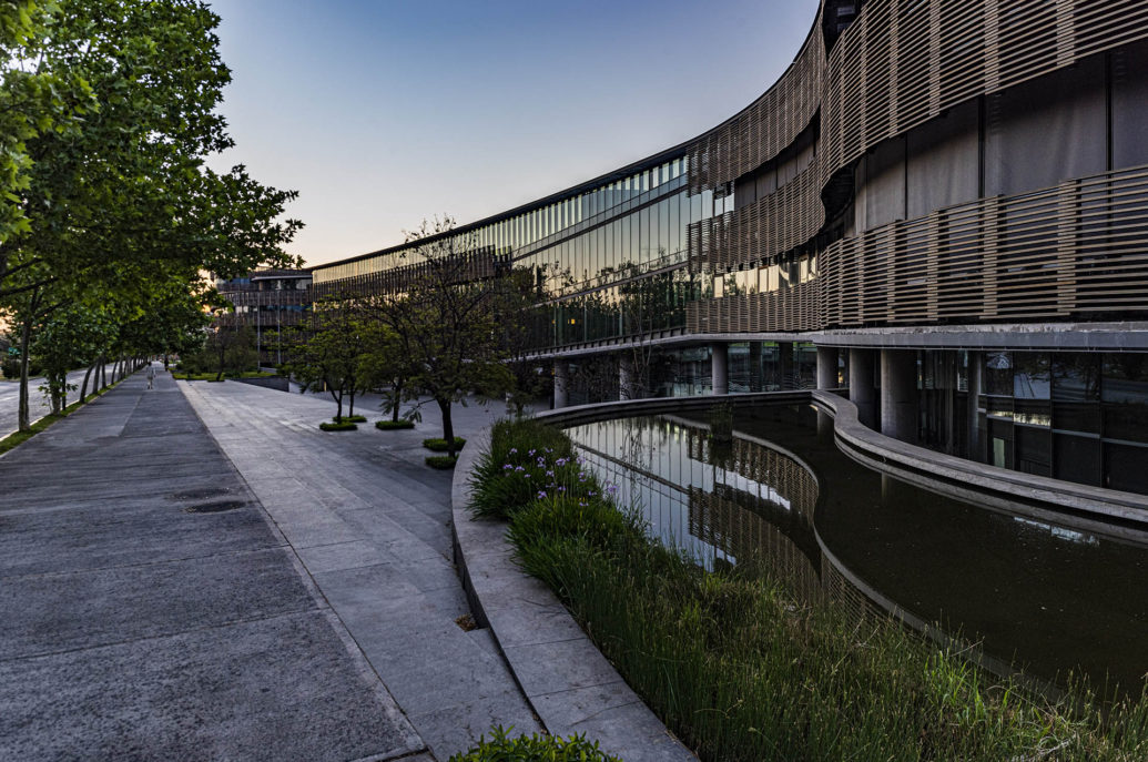 Los edificios Tánica y Oficinas B fueron construidos por la prestigiosa oficina +arquitectos (Alex Brahm y Marcelo Leturia); y el paisajismo del conjunto fue desarrollado por Juan Grimm. Se optó por usar materiales convencionales: madera, cristal, acero y hormigón, desnudos y sin decoraciones, apuntando a armonizar las formas curvas con los colores tenues del paisaje natural circundante. El conjunto es completamente abierto y se puede recorrer con los vecinos, aportando una considerable superficie de espacios y equipamientos destinados a la comunidad. Este tipo de iniciativas en esta zona residencial constituye un gran aporte a la calidad de vida de las personas, integrando funciones, disminuyendo desplazamientos, entregando servicios y mejorando la seguridad al extender el tiempo de uso de los espacios públicos.